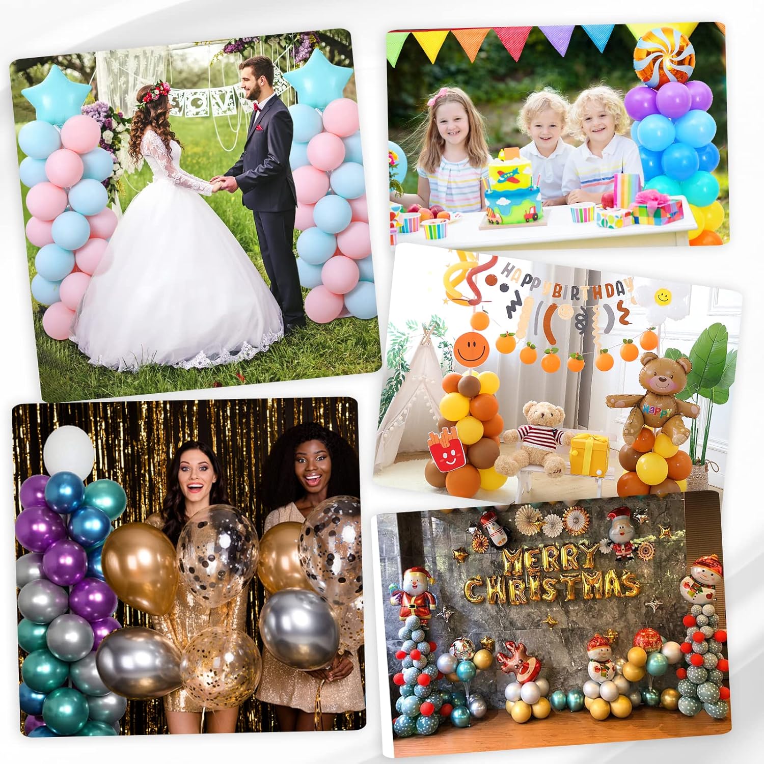 | Material | 45 Balloon Clips, Metal Balloon Columns Stand Kit Set of 2, Plastic Balloon Column Topper Cap Holder, Sturdy PVC Balloon Stands with Heavy Duty Base |