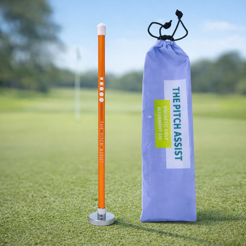 The Pitch Assist is a simple yet powerful golf training aid that helps golfers correct their club alignment at the point of impact. Also shows where your ball is truly going when you open or close your clubface. Develop targeted iron shots quickly by simply snapping this easy to use magnetic training aid onto your irons. You will start shaving strokes off your round with more targeted iron play. Watch your GIR percentage increase, your putting average decrease, and start sinking those short chips just like the tour pros. Powerful magnet with 20lbs of pulling force attaches to most irons and wedges. The weighted base and lightweight shaft make it possible to perform half speed practice swings to help you hone in on your clubface position through each part of your swing. Use this portable golf training tool in the backyard, at the range, on the chipping greens, or during a live round. Get The Pitch Assist, and start pin seeking now!!!