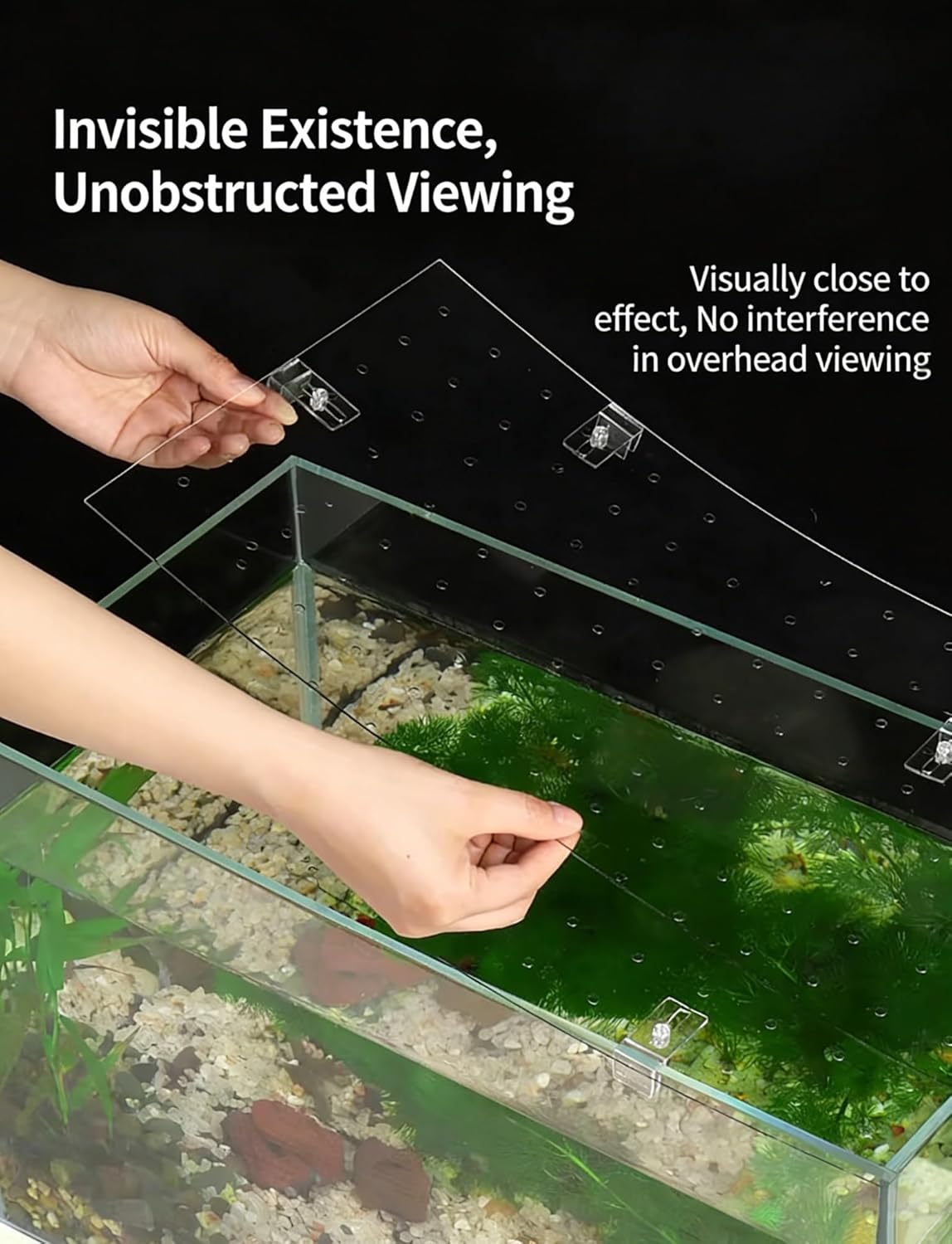 Keep your aquatic friends safe and your aquarium clean with our Clear Fish Tank Cover. Crafted from PC plastic, this transparent lid provides unobstructed views of your underwater world while offering reliable protection.Key Features:Anti-Jump Security: Prevents fish, shrimp, or small aquatic creatures from leaping out of the tank, reducing the risk of injury or loss.Sturdy Construction: Made from impact-resistant PC material, this cover is built to withstand daily use and resist cracking, ensuring long-term durability.Easy to Use: Lightweight design makes it easy to lift for feeding, tank maintenance, or rearranging decorations. The smooth wipes clean effortlessly with a damp cloth.Please note: The included bracket is suitable for aquariums with a glass thickness of 6 mm. If you require other thicknesses, please inform us of your aquarium specifications before purchasing.