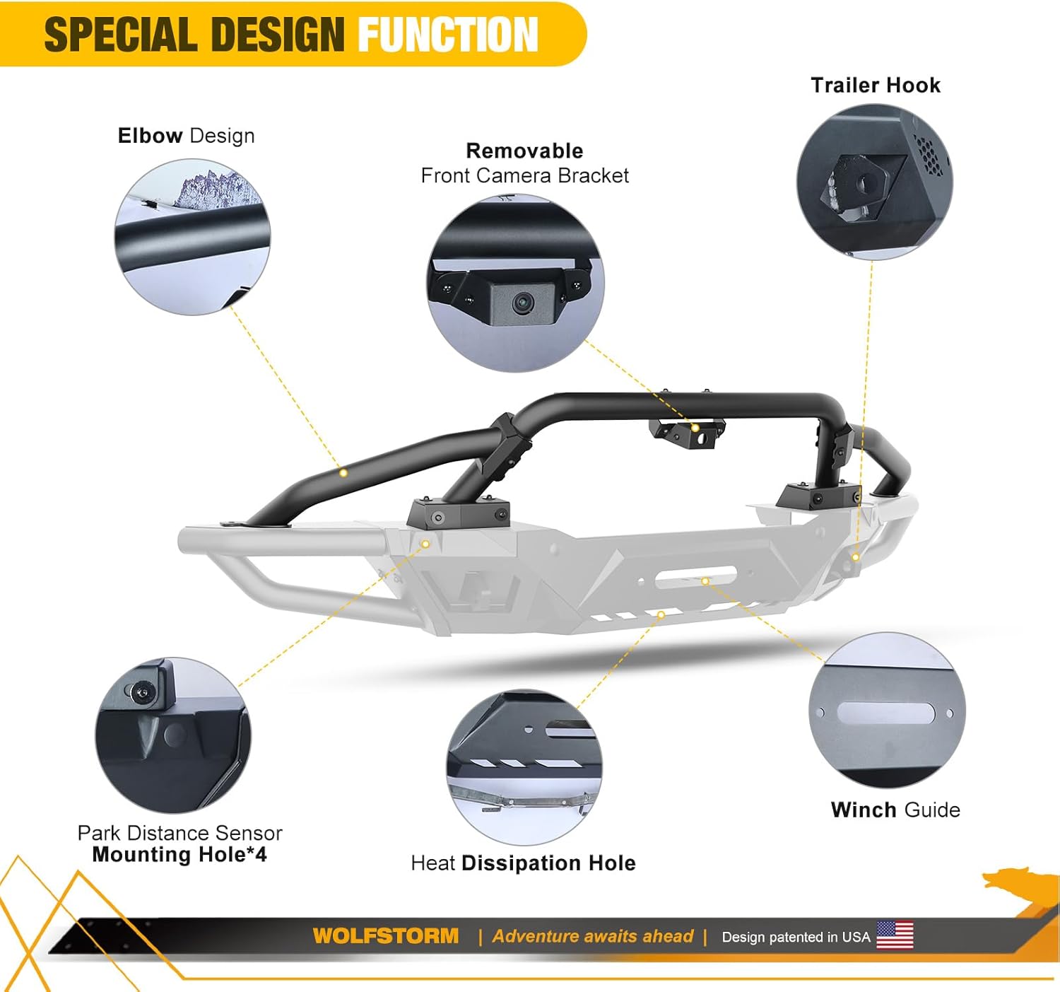 Introduce The bull bar features a rugged appearance and aggressive design that can adapt to any terrain. The bull bar is made of Q235A steel, which has excellent strength and stiffness.Specification Colour: Black Material: Q235A steel structure Fits:2021-2026 Ford Bronco(not Bronco Sport)Easy Bolt-on Installation This bull bar is designed as a direct bolt-on upgrade that requires only basic hand tools, so no drilling or cutting is required for direct installation.What do you get? 1 x WOLFSTORM Bull Bar Includes all installation tools and installation instructions.About StoreWOLFSTORM is a brand that has been involved in auto accessories for more than 20 years. Our motto is "Innovation, Quality, Service, Brand" to provide customers with the highest quality auto parts. Through rigorous research and development, our team's pure passion for the automotive industry enables us to provide our customers with the best online shopping experience. Accessories include but are not limited to headlights, taillights, bumpers, etc.